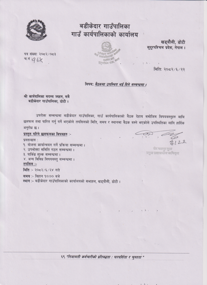 वैठकमा उपस्थित भइ दिने सम्बन्धमा !