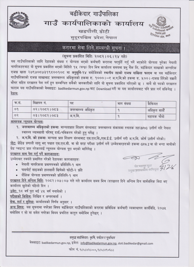 करारमा सेवा लिने सम्बन्धी सूचना !
