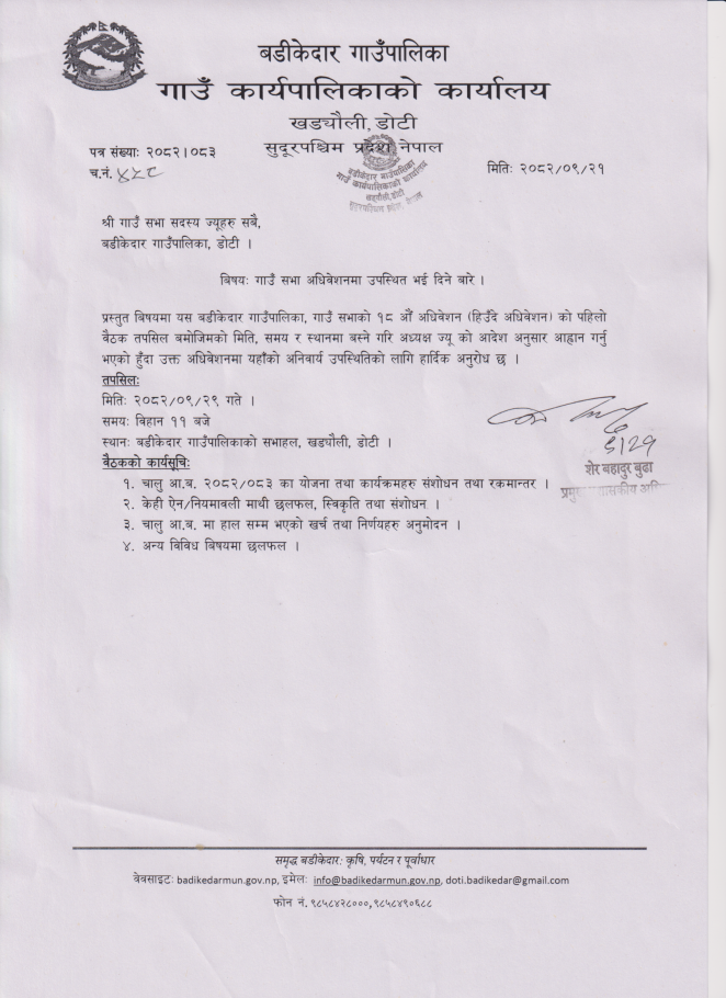 » गाउँ सभा वैठकमा उपस्थित भई दिने बारे ।