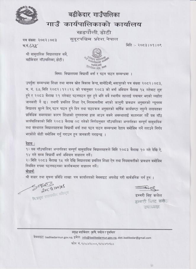 » विद्यालयमा विद्यार्थी भर्ना र पठन-पाठन सम्बन्धमा !
