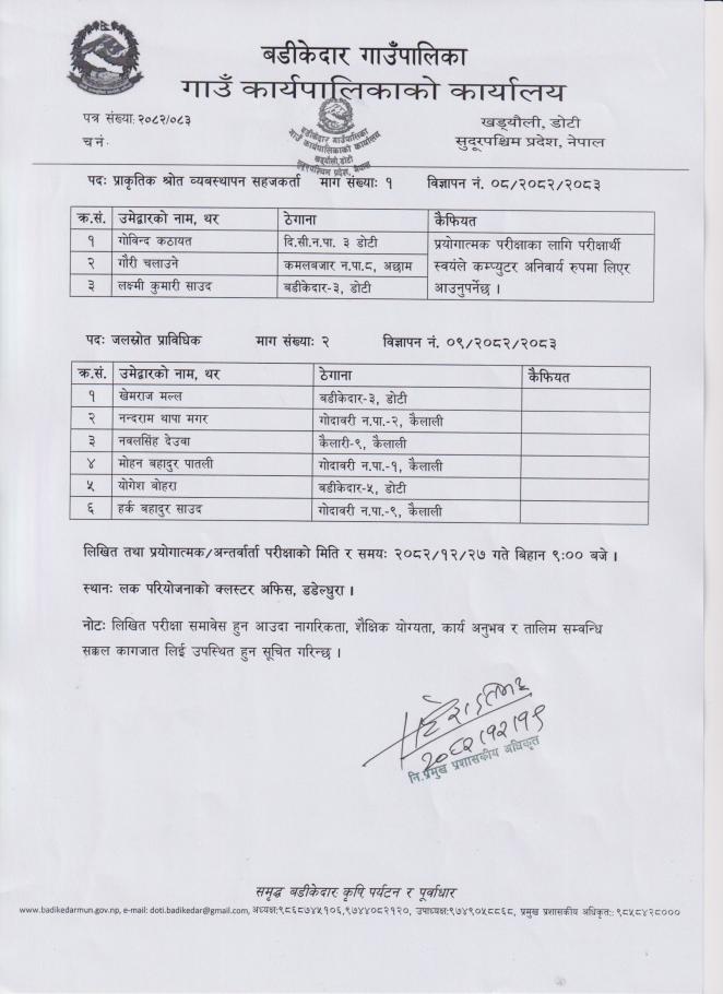 संक्षिप्त सूचि प्रकाशन गरिएको सम्बन्धी सूचना !