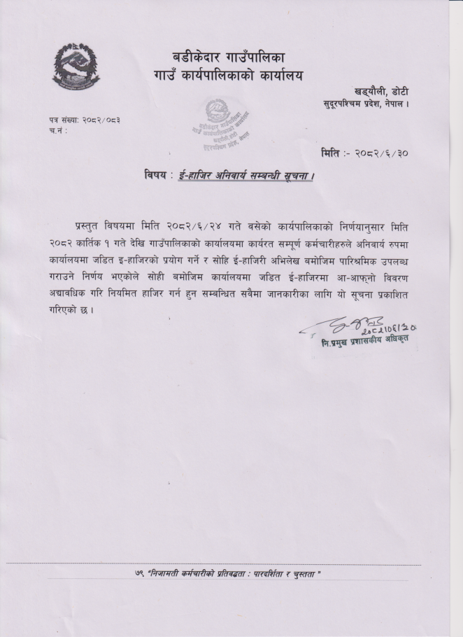 ई-हाजिर अनिवार्य सम्बन्धी सूचना !